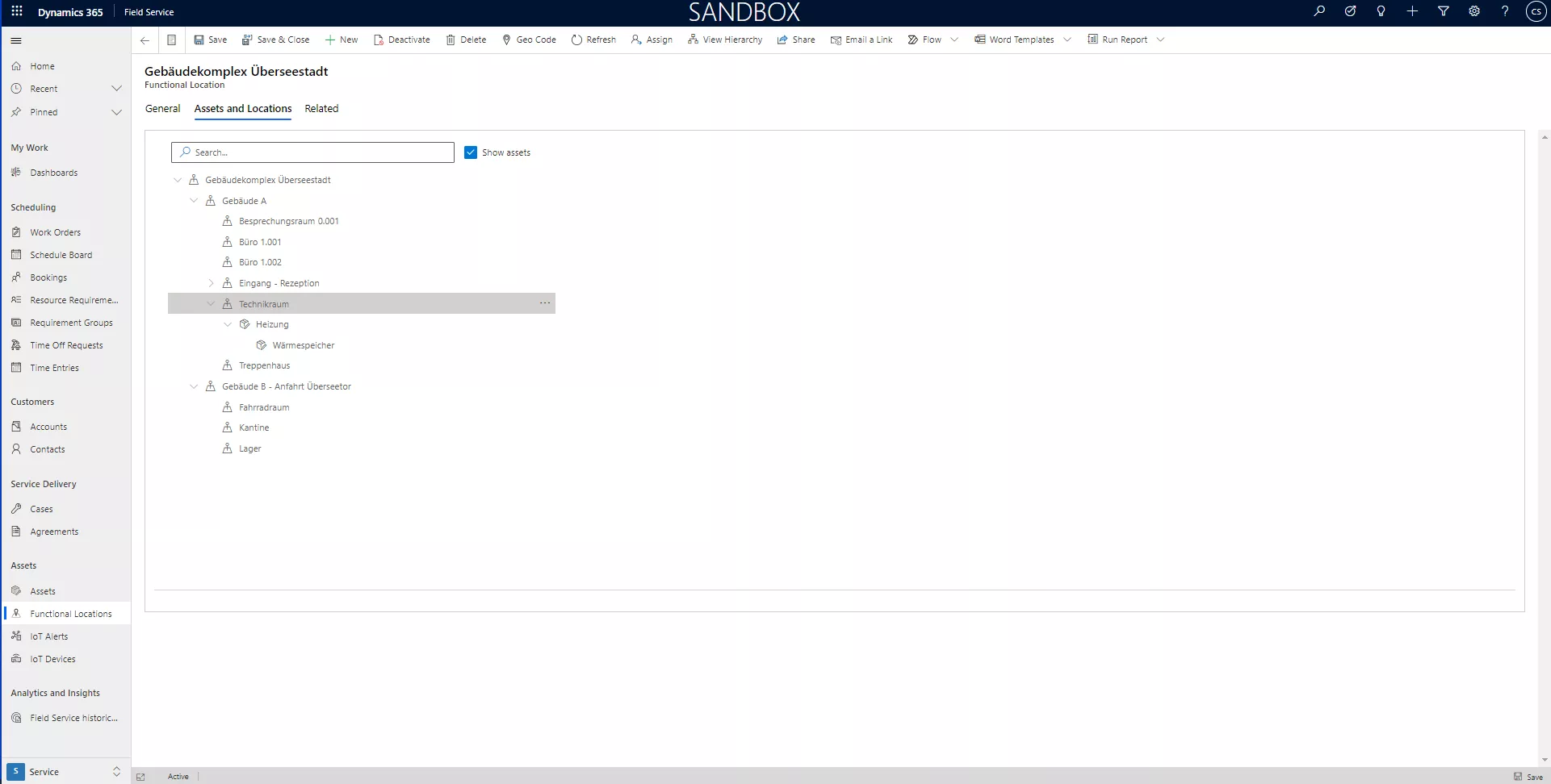 Darüber hinaus gibt es in dieser Struktur die Möglichkeit, Anlagen einem detaillierten Standort zuzuordnen („Show Assets“).