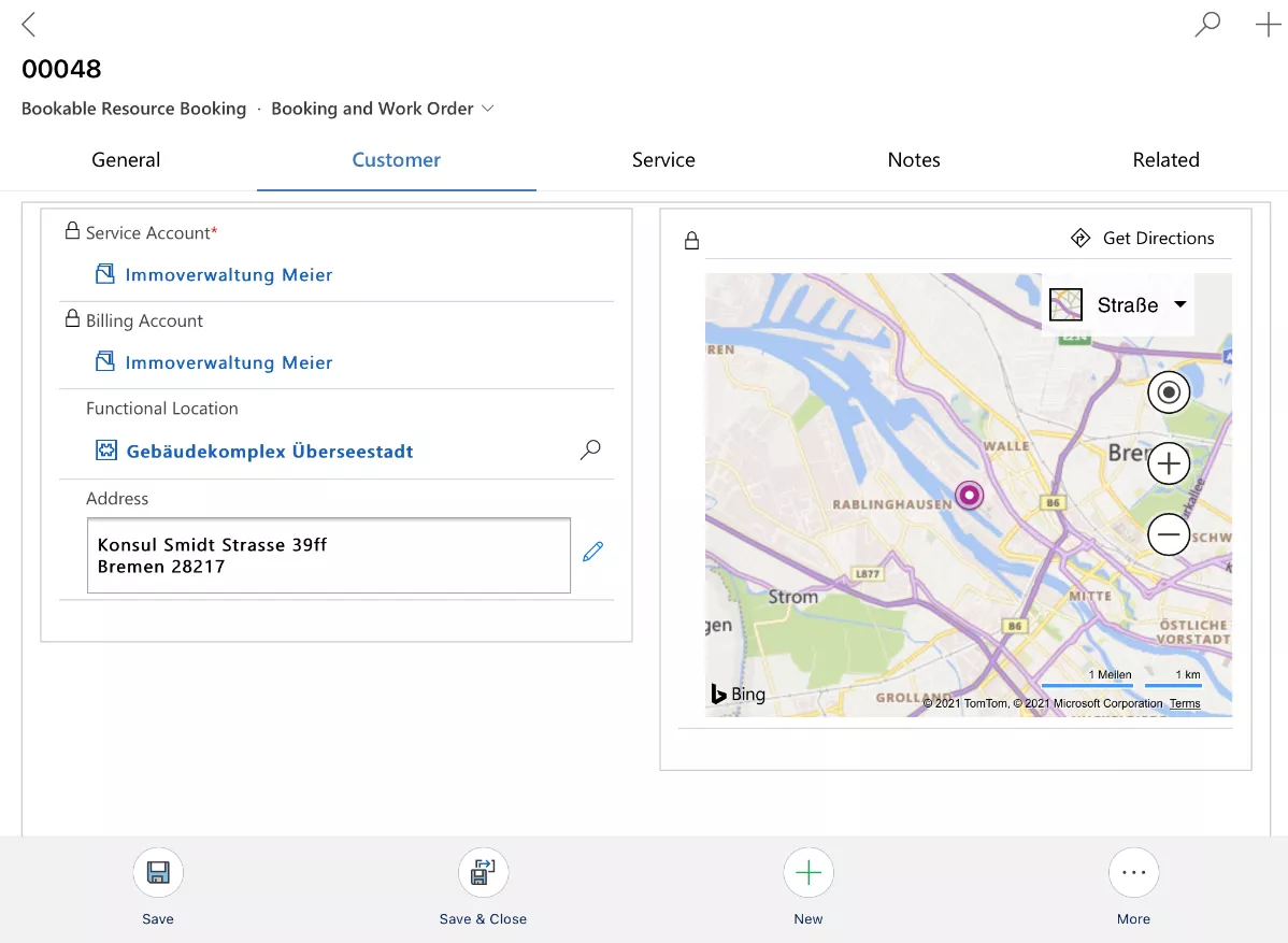 Die Stammdaten-Abbildung ermöglicht einen viel effizienteren Umgang mit Adressen. Früher kam es vor, dass ein Techniker zur Account-Adresse fuhr, die Anlage aber an einer anderen Adresse verbaut war. Oder ein Techniker befand sich an der Adresse, die hinterlegt war und musste dann erst einmal um ein Werksgelände fahren oder den Kunden anrufen und sich „fernsteuern“ lassen, um zu seinem tatsächlichen Einsatzort zu finden. All das führte zu Verspätungen und Frust, sowohl auf Seiten des Technikers als auch beim Kunden.