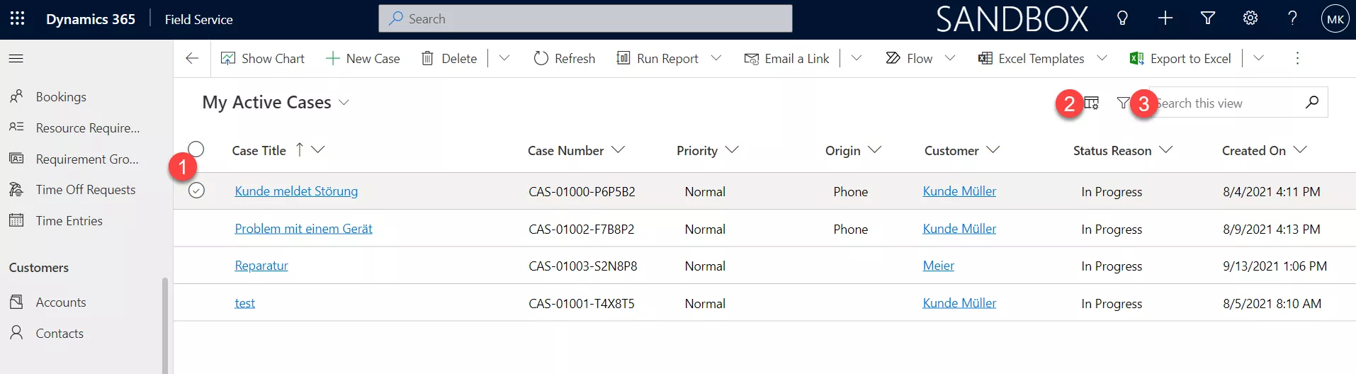 Zudem können in Listen einfach Spalten hinzugefügt oder in anderer Reihenfolge angeordnet (2), sowie erweiterte Filterfunktionen (3) genutzt werden.
