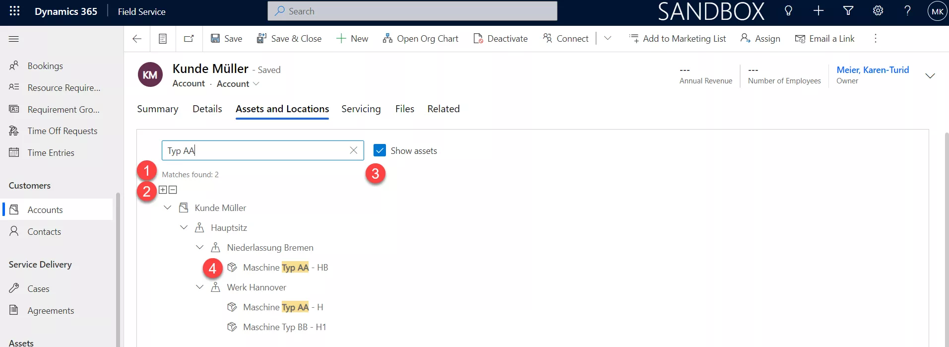 Zur schnelleren Lokalisierung einer bestimmten Anlage, gerade bei Kunden mit vielen Anlagen, wurden folgende Funktionen im Bereich „Assets and Locations“ bereitgestellt:
