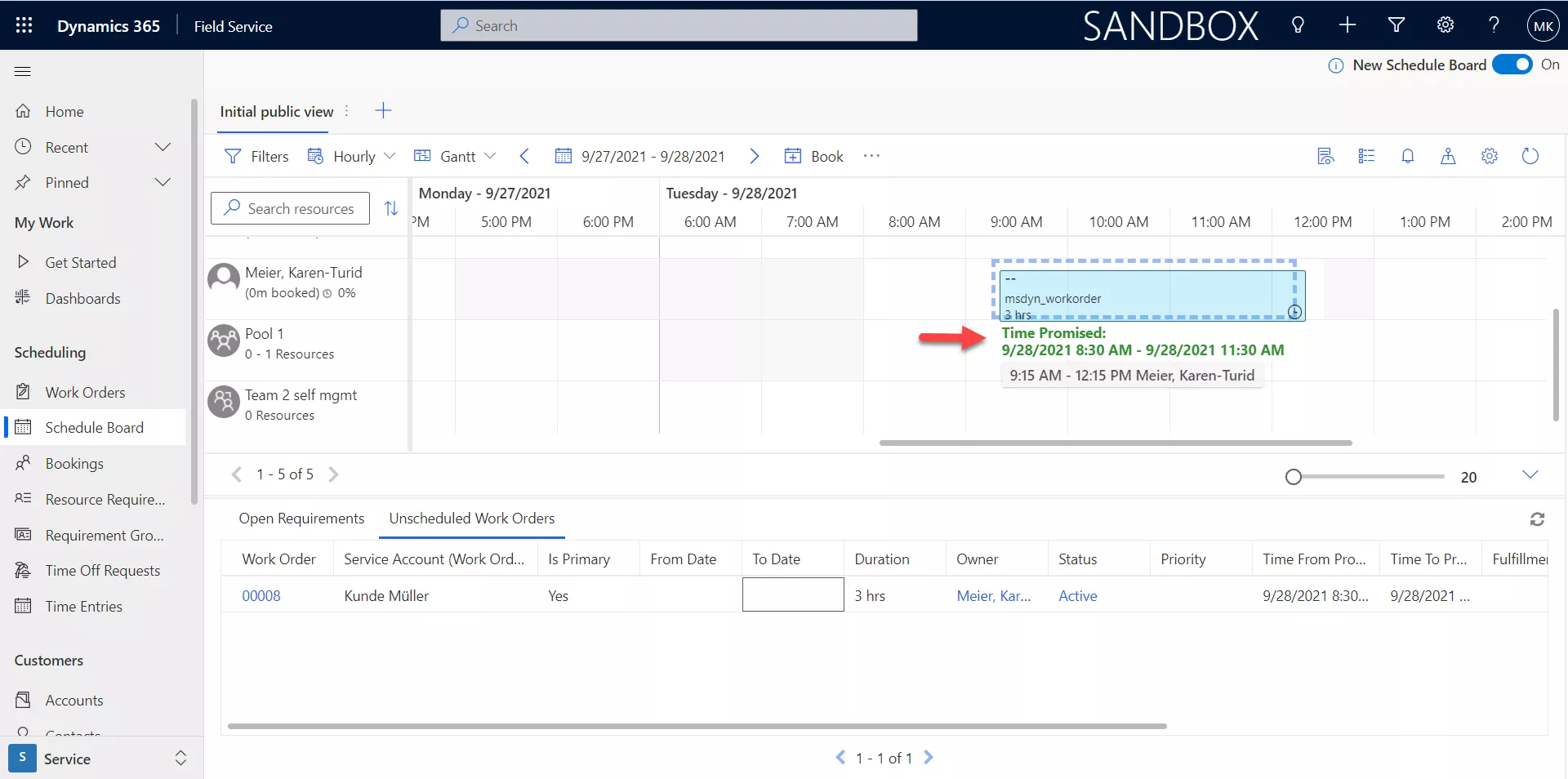 Sie bekommen freie Terminverfügbarkeiten vorgeschlagen. Bei den Vorschlägen sind auch Anfahrtszeiten berücksichtigt. Dies kann der Dispo Zeit bei der Terminabstimmung sparen.