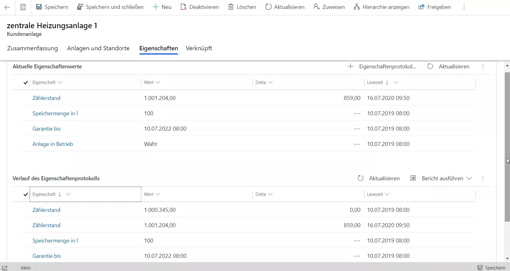 Anlagen-Eigenschaften