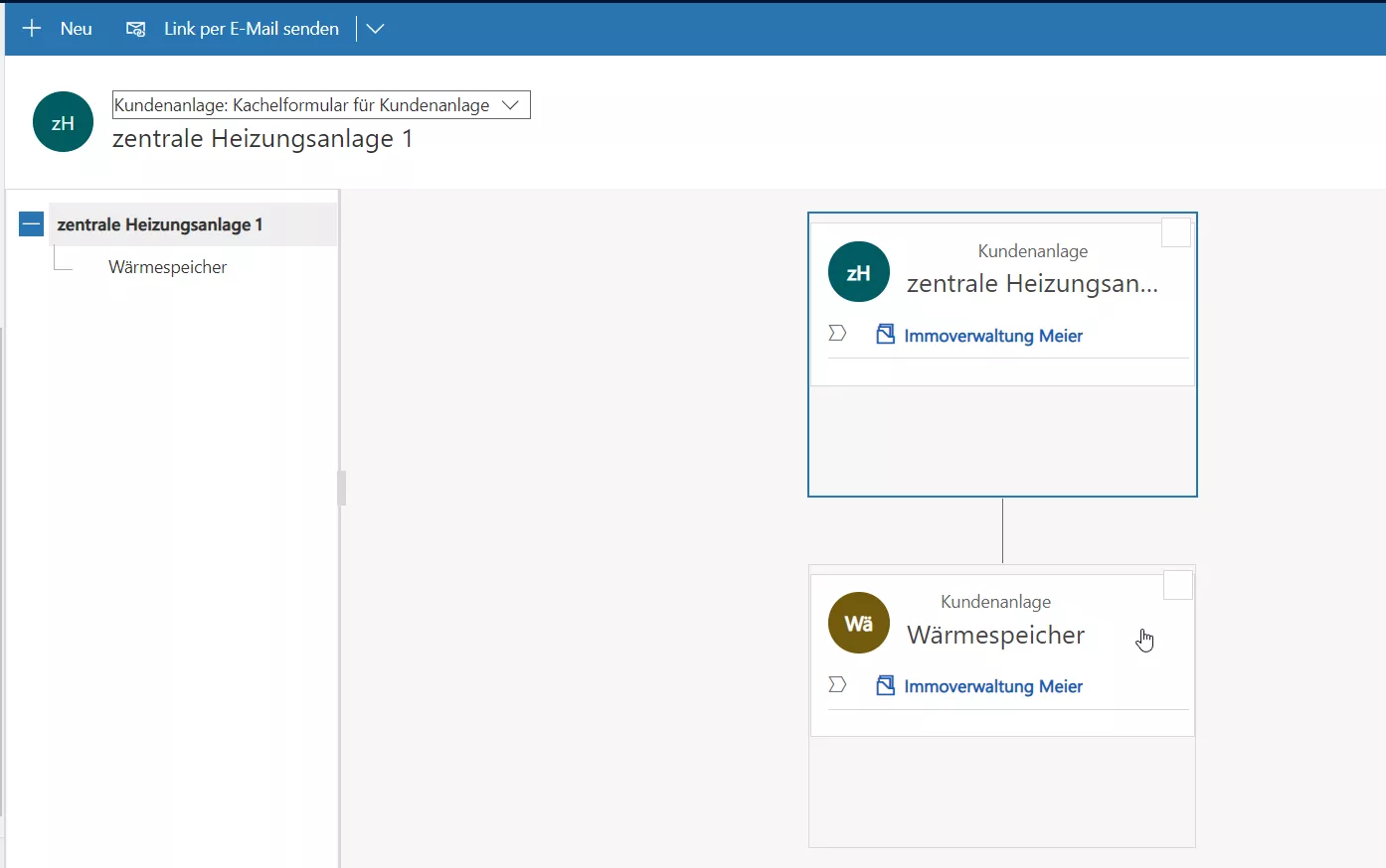 Eine Neuerung in diesem Bereich ist, dass Sie Anlagen jetzt auch hierarchisch abbilden können. Sie erkennen, dass eine Hierarchie vorhanden ist, wenn das Symbol vor der Anlage angezeigt wird.