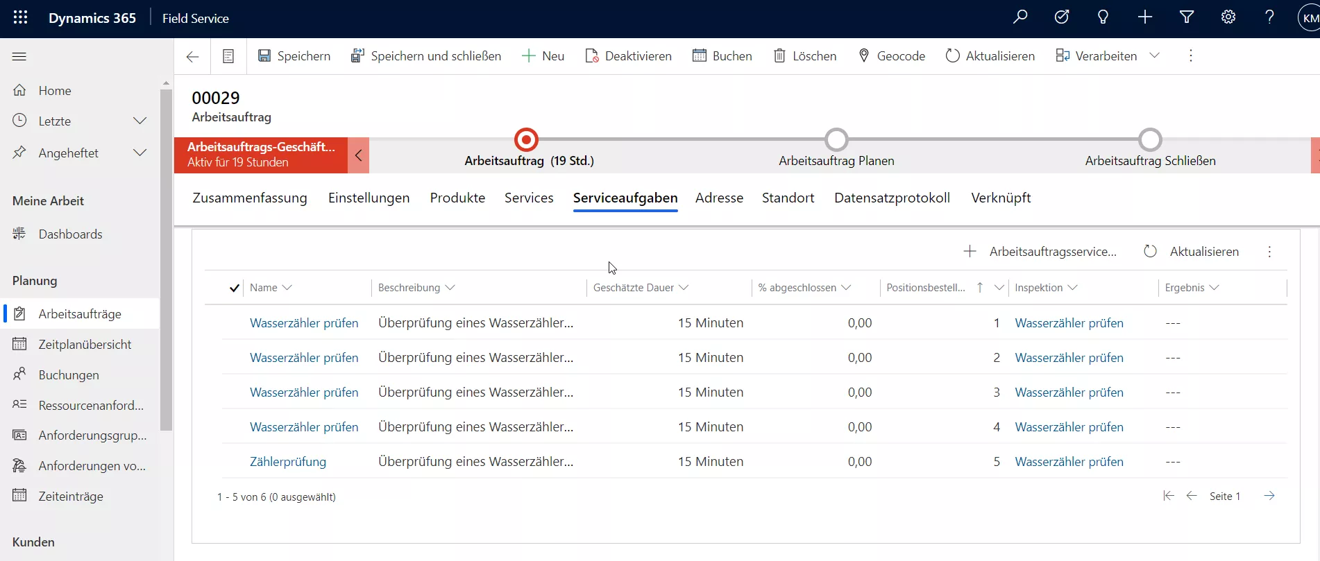 In den Serviceaufgaben, die auch aus einer Vereinbarung heraus automatisiert angelegt werden können, finden Sie dann zu jeder Anlage jeweils eine Aufgabe: