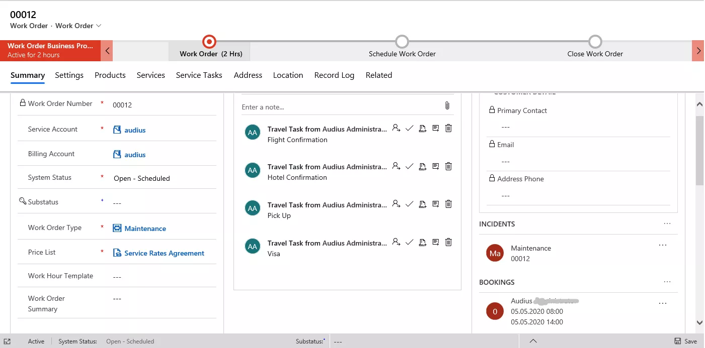 Nachdem alle erforderlichen Parameter gesetzt wurden, wird die Vereinbarung auf den Systemstatus „aktiv“ gesetzt, womit die Erstellung der Buchungsdaten ausgelöst und der Arbeitsauftrag zur gegebenen Zeit erzeugt wird. Dieser kann dann wie gewohnt disponiert und durch einen Servicetechniker bearbeitet werden.