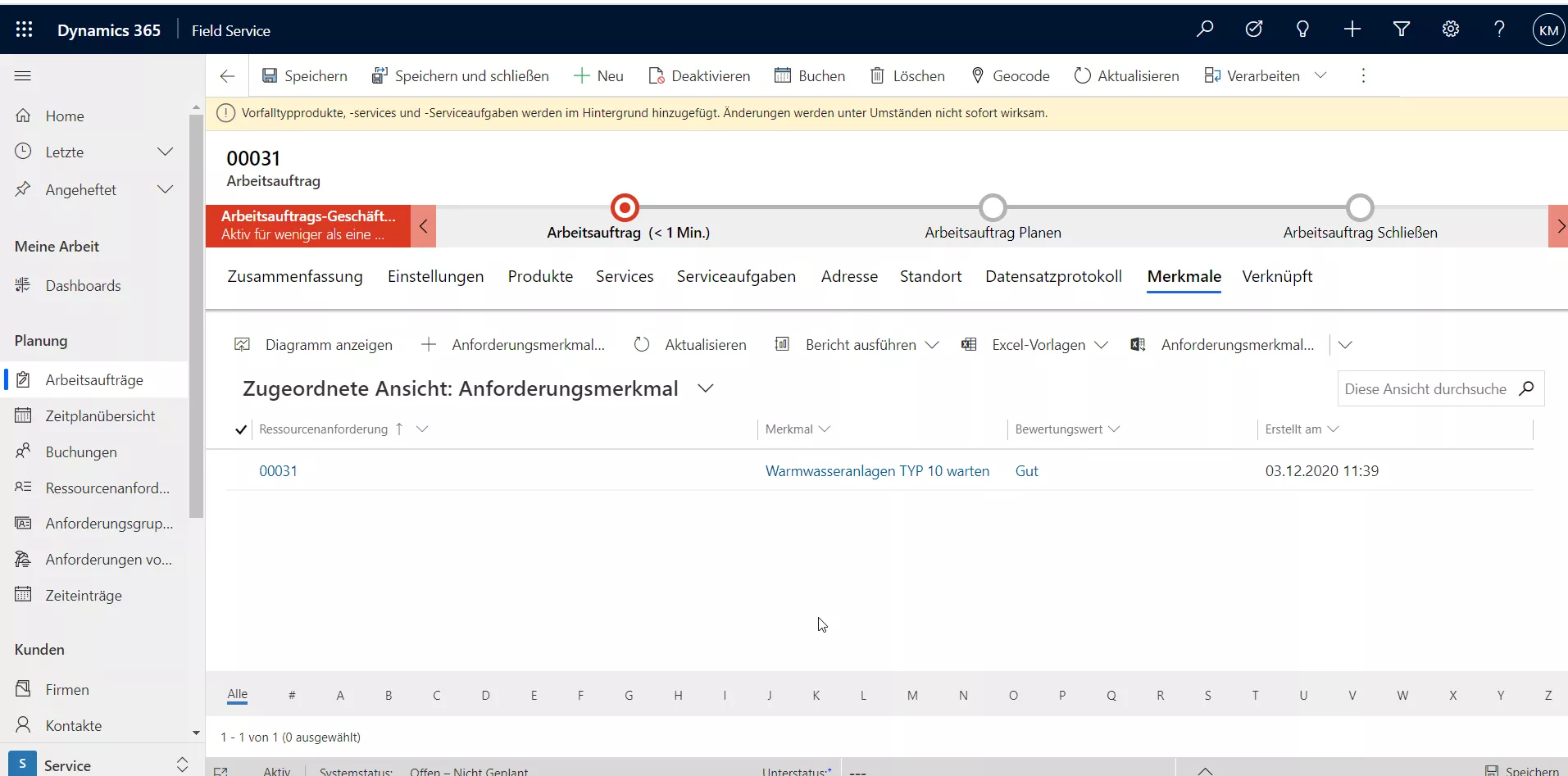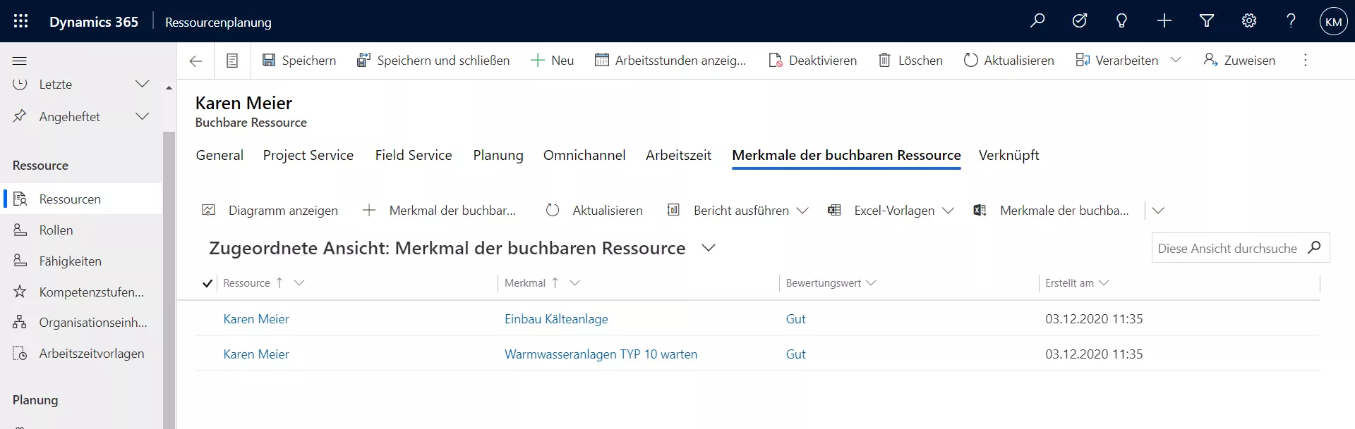 Über die Merkmale können Sie also die Qualifikationen der einzelnen Techniker dem gesamten Service sichtbar machen und auch den Ausbildungsstand Ihrer Techniker monitoren.