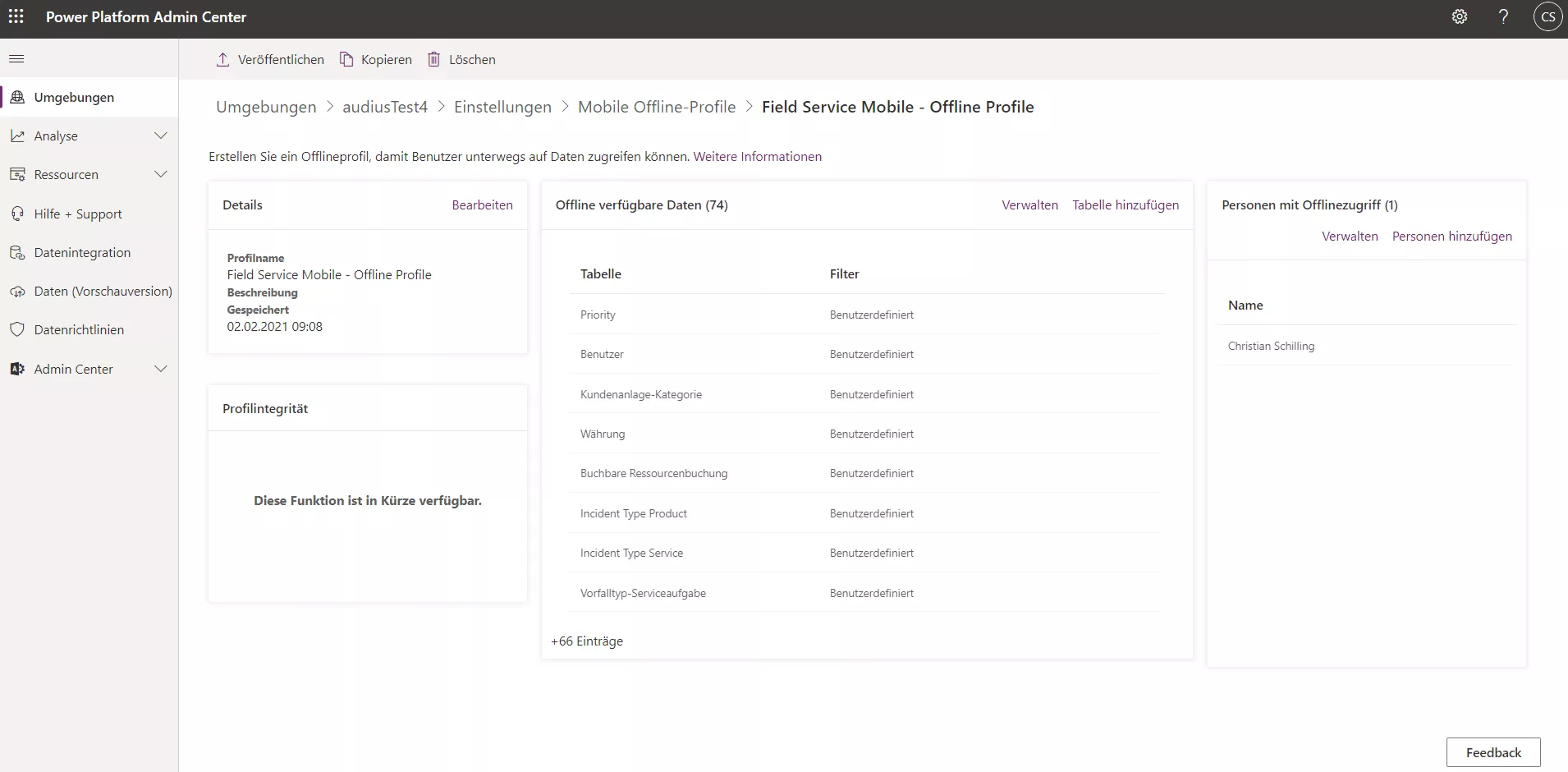 Mobile- und Offline-Verfügbarkeit stellen Sie im Power Plattform Admin Center ein:
