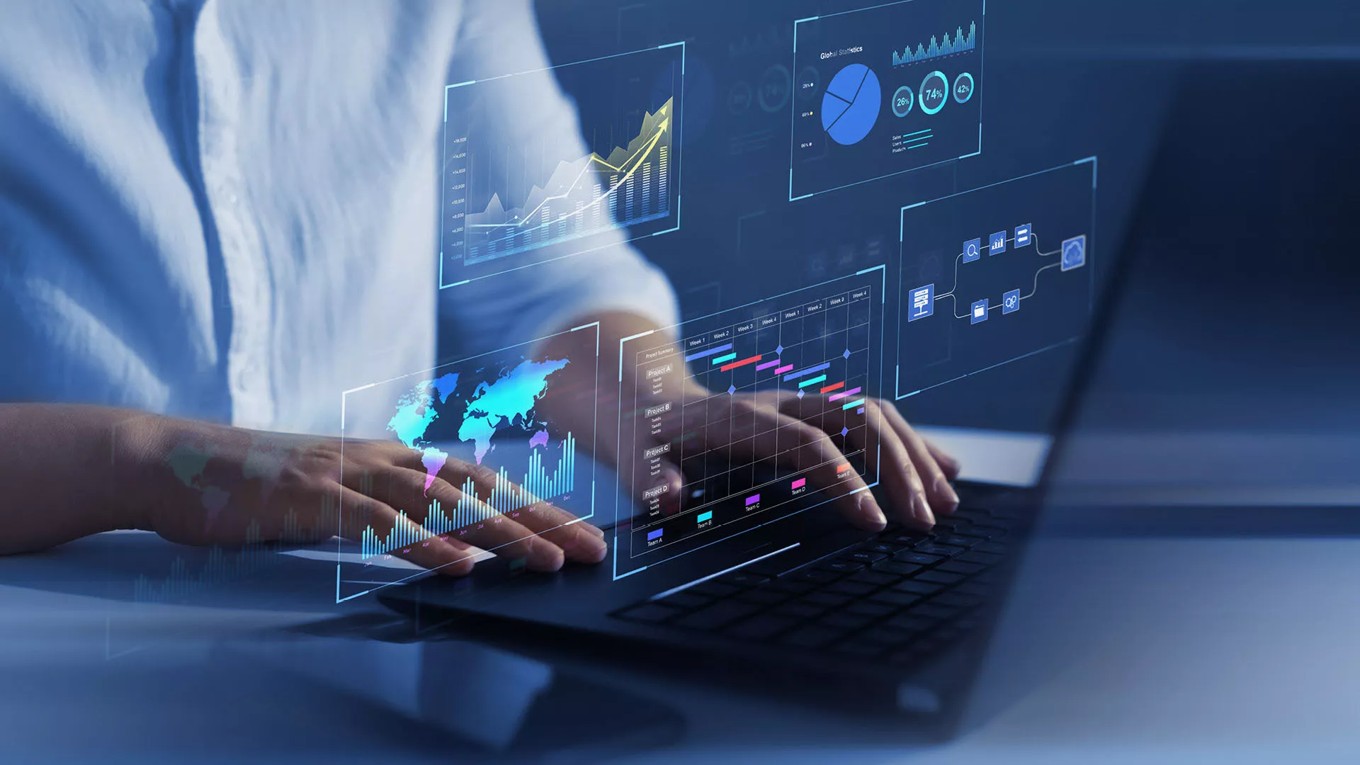 Die Durchgängigkeit von Dynamics 365 bedeutet, dass alle Unternehmensbereiche miteinander verbunden sind. Daten können nahtlos zwischen den verschiedenen Anwendungen ausgetauscht werden, dadurch wird eine effiziente Zusammenarbeit ermöglicht und die Reaktionszeit auf Kundenanfragen verkürzt.
