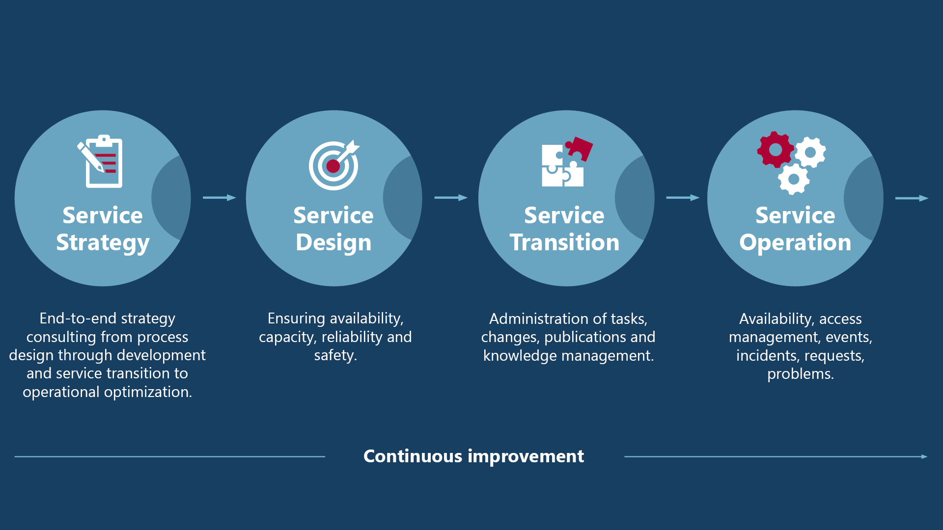 audius supports you with a full-service solution, from service strategy and design through implementation to ongoing operations. This ensures that you never lose sight of any aspect of the complex structure of a modern IT service desk and that you always have a reliable partner at your side. The focus is on continuous improvement in order to recognize all potential and implement it in a verifiable manner.